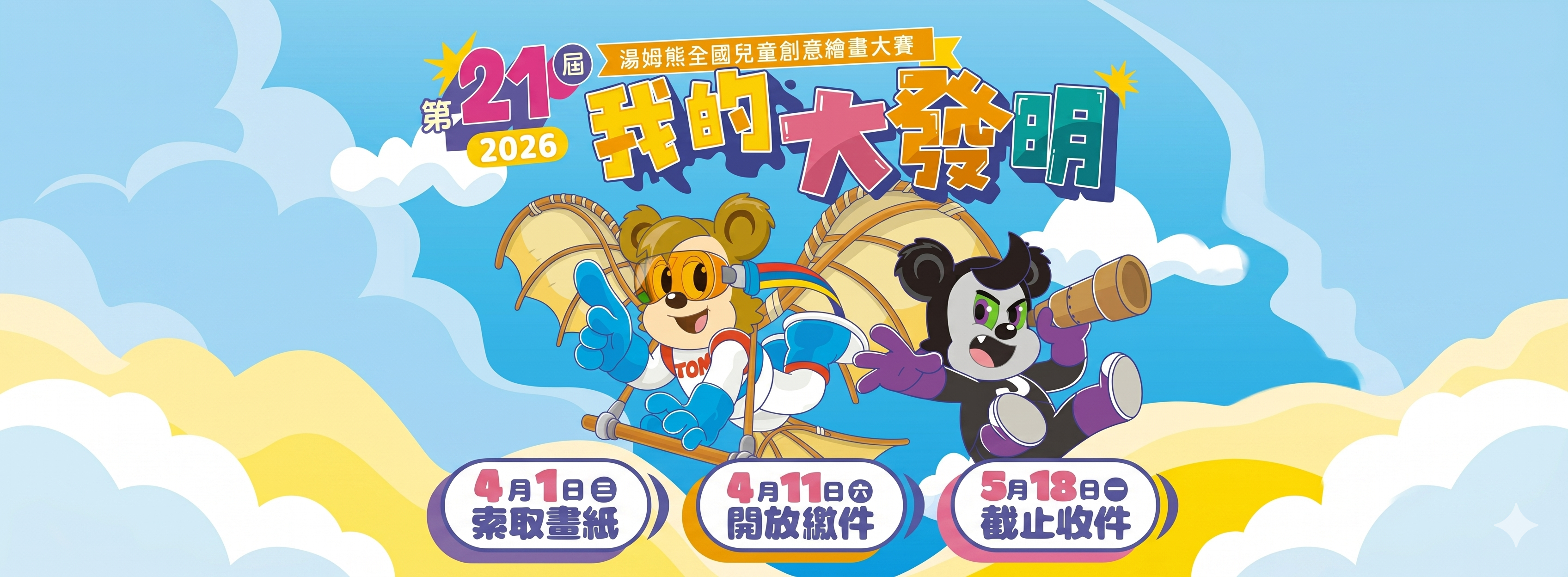 湯姆熊2026兒童創意繪畫大賽「我的大發明」4/1(三)~5/18(一)超乎想像